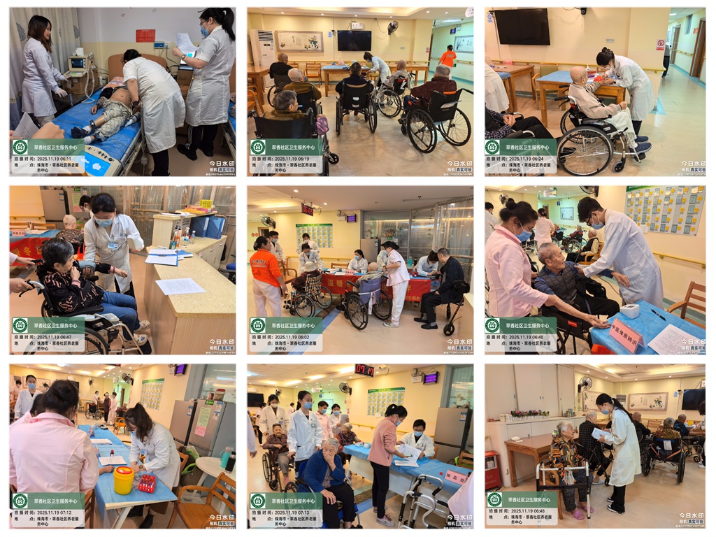 翠香社区卫生服务中心携手翠香街道办、翠香社区养老服务中心,2025年11月19至20日期间,翠香社区卫生服务中心家庭医生团队在翠香社区养老服务中心开展了一场面向翠香街道康园中心会员的专场体检活动,旨在为街道内的残疾群众提供更为便捷、贴心的健康服务,以实际行动传递社会关爱,落实精准帮扶。