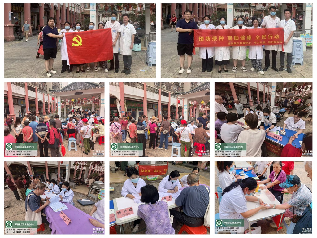 为深入普及预防接种知识,筑牢全民免疫屏障,2026年4月27日下午,翠香社区卫生服务中心联合中山大学附属第五医院全科、新村社区卫生服务站及翠香街道社区卫生服务机构联合党支部,在岭南世家·华景园小区开展“预防接种,苗助健康,全民行动”主题联合义诊,将健康服务送到居民“家门口”。
